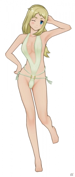 「カティ」をイメージした水着のセット。大胆なカットのワンピースタイプの水着が、「カティ」のいつもと違った魅力を引き出す。
