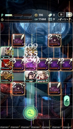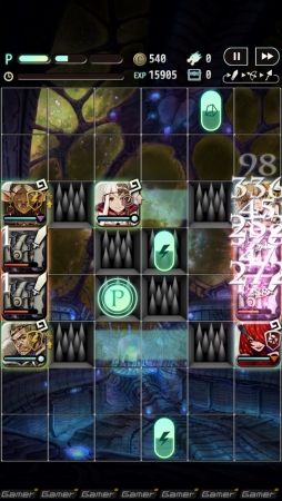 キャラクターに関してもう一つ重要なのは、各タイプに応じて習得するスキル/魔法の存在だ。例えば魔法使いの攻撃魔法は、直接挟んだ敵に加え、その周囲1マスに対しても同様にダメージを与えられる。また、本作の回復魔法は、攻撃終了後に連鎖した味方キャラクターに対して発動する仕組みである。回復魔法が使えるキャラクターを2人揃えたうえで上手く配置すると、6人全員を毎ターン攻撃/連鎖に参加させ、さらに全員を回復させ続けるといった永久機関も可能だ。これはほんの一例で、タイプ/属性/スキルにまつわるテクニックは非常に多い。