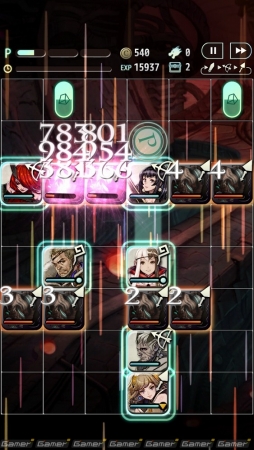 敵味方の全キャラクターは“剣/槍/弓/杖”の4タイプに大別され、それとは別に“炎/氷/稲妻/闇”といった属性もある。連鎖を狙う際、“槍は剣に対して有利”“弓は槍に対して有利”などの相性関係(3すくみ+α)を考慮するのは基本戦術だ。また、出現する敵のタイプは事前に確認できるので、“弓”タイプの敵が多ければ“剣”を揃えた編成で挑むなど、ステージの開始前から勝負は始まっている。