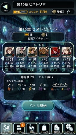 とりあえずエナジーに関しては、5~10ステージで構成される“章”のクリア時や、ログインボーナスなどを通じて頻繁に得られる。これを集めてエナジーガチャを行えば必要な戦力は揃えられるし、少なくともリアルマネーを注ぎ込まずとも、メインコンテンツを満喫するうえでの支障はまったく無い。