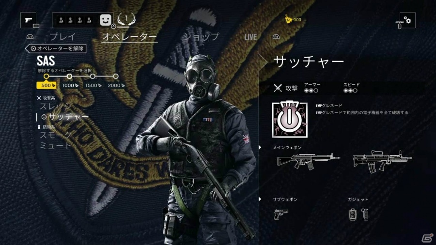続いてプレイヤーが操作するオペレーターを紹介しよう。本作に登場するオペレーターは5つの特殊部隊に4名ずつの計20人おり、それぞれに特徴的なガジェットを持っている。イギリス陸軍の特殊部隊「SAS」に所属しているThatcher(サッチャー)なら電子機器を即座に使用不可にする「EMPグレネード」、アメリカの特殊火器戦術部隊「FBI SWAT」のPulse(パルス)なら近くにいる人間を感知できる「心拍センサー」が使用可能だ。