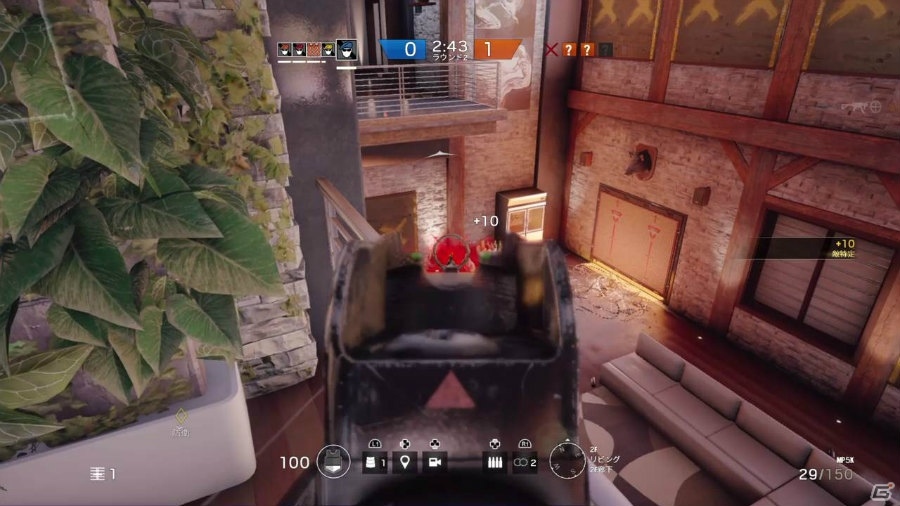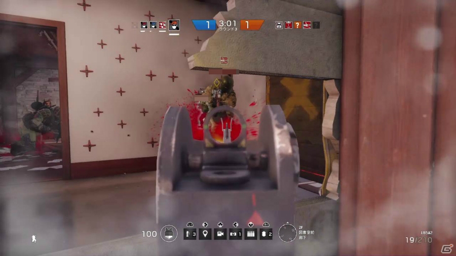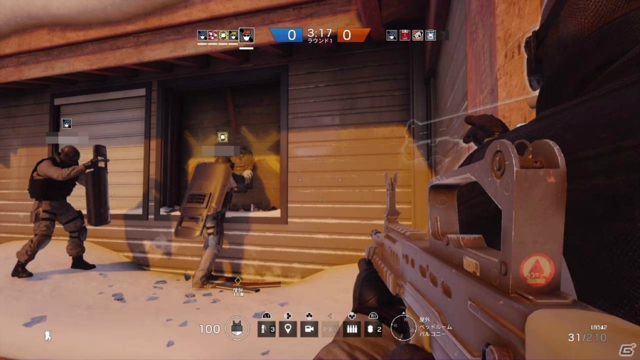 気を取り直して建物の2階から突入するといきなり銃撃戦が開始された。どこにいるのかわからずに手当たり次第に撃っていたのだが、敵は1階から2階に向かって撃っていたようで、あっさりと倒されてしまった。ウェポンやガジェットの種類によっては壁や障害物などを容易に破壊できるものもあるようだ。
