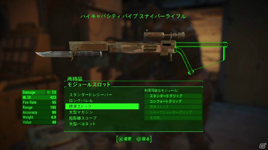 筆者は、Vault111で入手した10mmピストルと、レイダーたちが使っていたパイプピストルをメインの武器にして戦っていた。パイプピストルを初めて見た時は、攻撃力が低くスクラップのように感じられて使用しなかったのだが、本作ではかなり主流の武器のようで弾が入手しやすい。攻撃力の低さは「武器作業台」を利用して、パーツをカスタマイズすることで補える。強化をするために“ねじ”や“鉄”などの素材が必要になるので集めておこう。