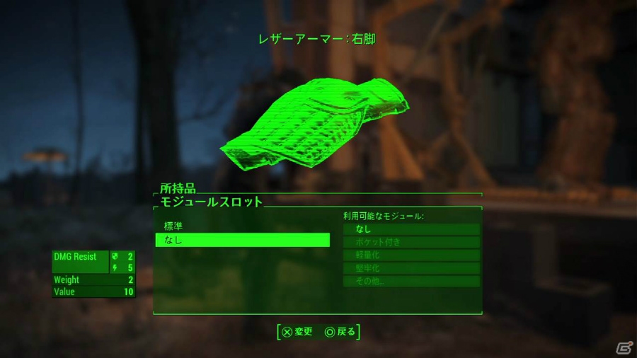 武器と同じく防具も「アーマー作業台」で強化できる。装備重量や防御力が大幅に上がるので、素材があれば強化をするといい。さらに本作ではより頑強な装備・パワーアーマーを装着することができるのだが、それも「パワーアーマーステーション」を使用すると改造が可能だ。