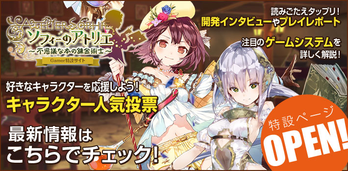コーエーテクモゲームスより2015年11月19日に発売されたPS4/PS3/PS Vita用ソフト「ソフィーのアトリエ ~不思議な本の錬金術士~」。同作を紹介する特設サイトにて実施した、キャラクター人気投票の結果を発表!