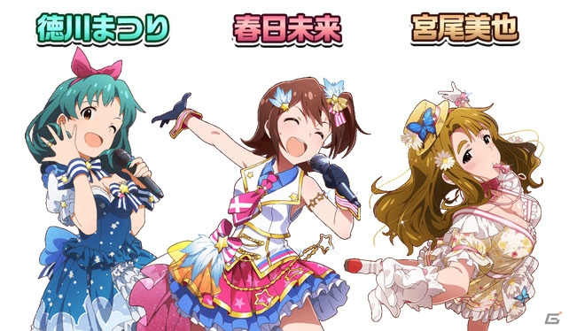 そして、11月からは2017年3月に日本武道館で開催されるミリオン4thライブと連動したイベントの実施が予定されている。今回はミリオンスターズが新たな12のユニットに分かれて、武道館ライブの成功を目指して頑張っていく。その中から今回は、春日未来、徳川まつり、宮尾美也の3人によるユニットが公開となった。