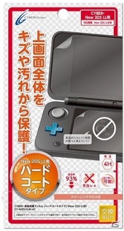 今回発売されるのは、New 2DS LL本体と関連アイテムをまとめて収納&携帯できる「CYBER・セミハードケース(New 2DS LL用)」と、液晶画面をキズや汚れから保護する「CYBER・液晶保護フィルム Premium(New 2DS LL用)」「CYBER・液晶保護フィルム[ハードコートタイプ](New 2DS LL用)」「CYBER・液晶保護フィルム[ブルーライトハイカットタイプ](New 2DS LL用)」の4種。New 2DS LLを安全かつ綺麗に使うためのアイテムがラインナップしている。