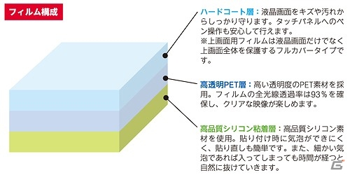 - キズや汚れに強いハードコート処理を施した、スタンダードタイプの保護フィルム