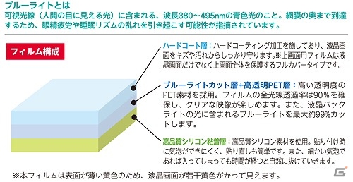 - ブルーライト※1を低減して、目の健康を守る保護フィルム
