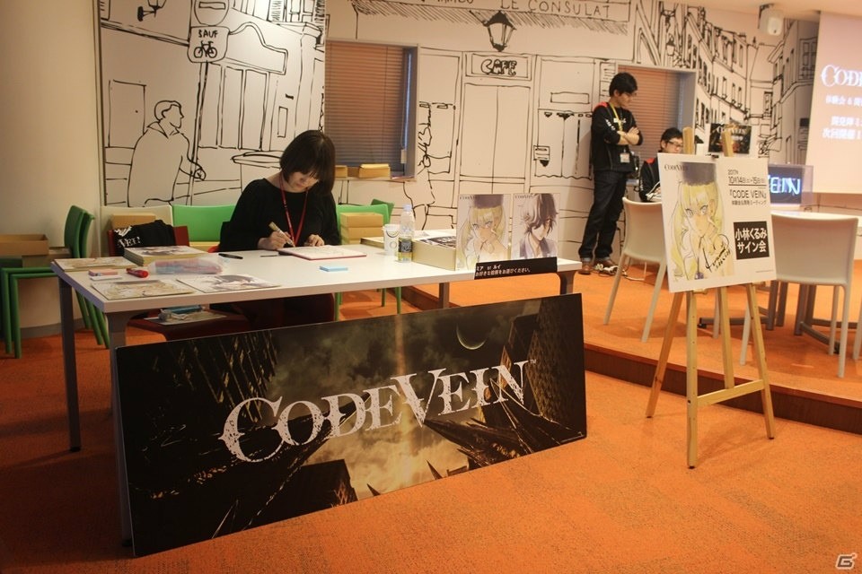 会場では、「コードヴェイン」キャラクターデザイナーの小林くるみ氏によるサイン会も行われたほか、来場者にはお土産としてオリジナルショッパー、特製バンダナ、特製ステッカーが配られていた。