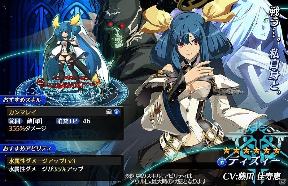 「ギルティギア」の人気キャラクター「ソル=バッドガイ(CV:中田譲治)」「カイ=キスク(CV:草尾 毅)」「ディズィー(CV:藤田佳寿恵)」「ラムレザル(CV:潘めぐみ/ルシフェロ(使い魔)関 智一)」が登場します。「ブレオデ」で再現されたユニットは必見!