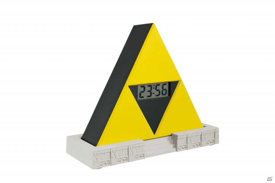 「トライフォース」をモチーフにデザインした時計です。設定時刻に「ゼルダの伝説 神々のトライフォース」タイトルBGMが流れ、トライフォースを掲げる(持ち上げる)と音が止まります。