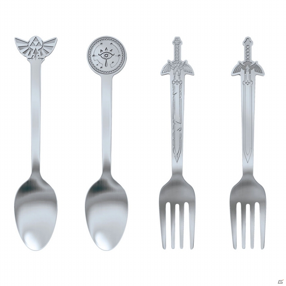 2種類のマスターソードと、ハイラル紋章やシーカーアイがデザインされたフォークとスプーンです。