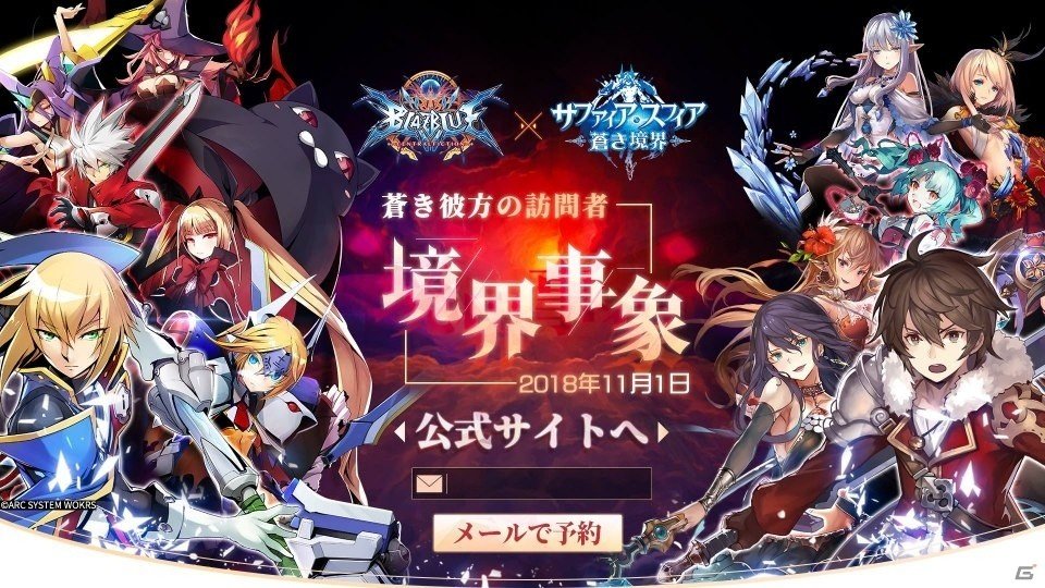 X.D.Globalは、iOS/Android向けアプリ「サファイア・スフィア~蒼き境界~」において、11月1日より「BLAZBLUE CENTRALFICTION」とのコラボレーションを実施すると発表し、本日10月26日より予約イベントを開始した。