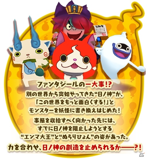 マルチで挑む“緊急討伐チャレンジ”で、ジバニャン・コマさん・ウィスパーを引き連れたボス妖怪「日ノ神」とバトル!