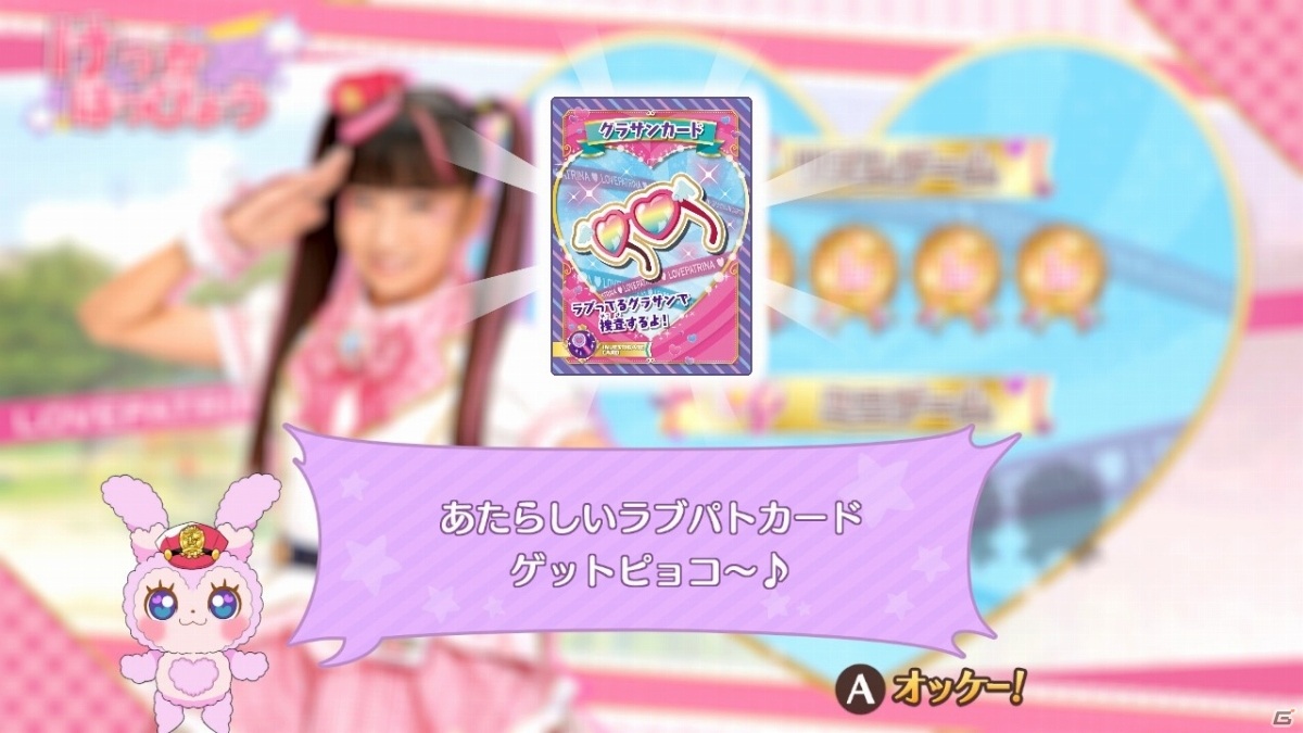 パトロールが無事に終わると、ごほうびにラブパトカードがもらえて、ゲーム内のラブパトカードアルバムに登録されます。アルバムに登録されるカードは50種類以上あり、登録されたカードの情報はいつでも見ることができます!