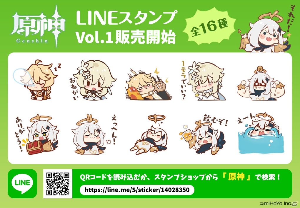 miHoYoは、PS4/PC/iOS/Android向けにサービス中の「原神」について、本日1月4日より公式LINEスタンプVol.1の販売を開始した。