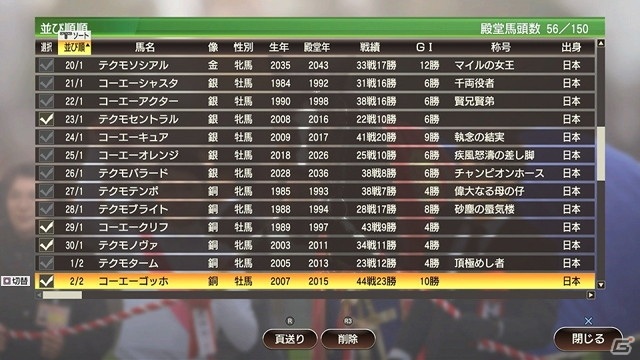 前作までは年末でのみ殿堂馬像を整理可能でしたが、今作は専用の画面を追加し、いつでも削除可能になりました。また、一度に複数を削除することも可能になっています。