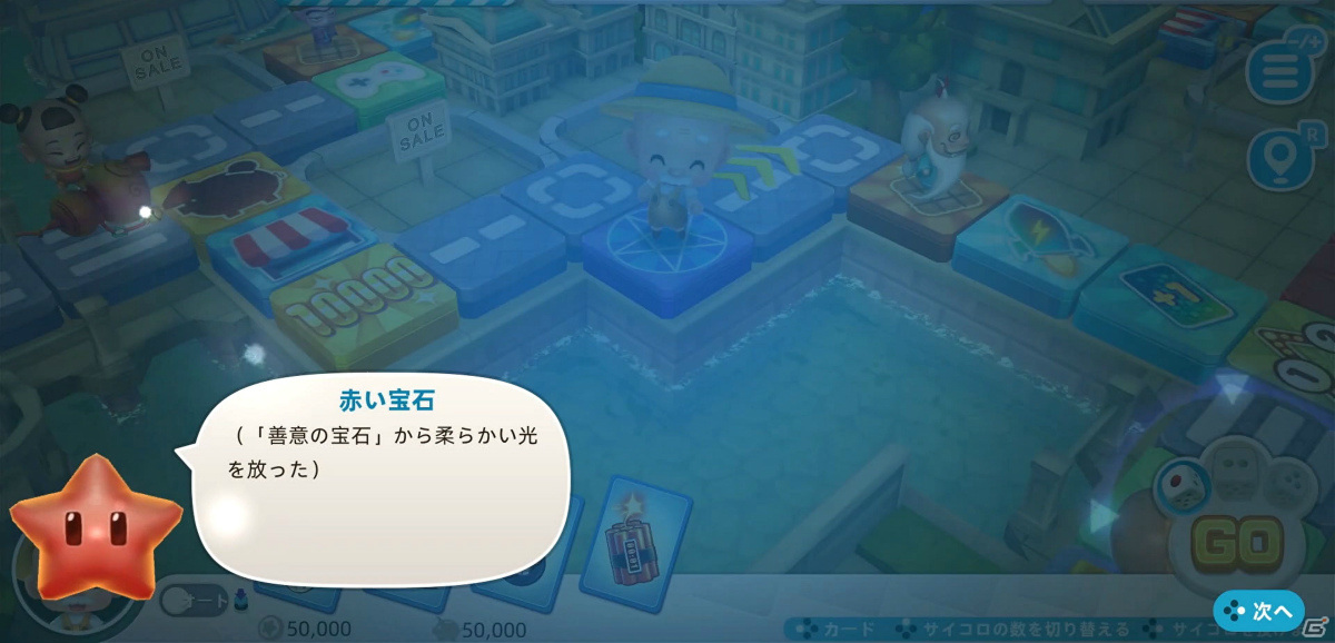 プレイヤーは、コマが止まったマスが空き地であればその土地を購入でき、そこに止まったライバルたちから通行料がもらえます。逆にライバルが購入した土地に止まってしまった場合は、あなたは通行料を払わなければなりません。こうしてマップをめぐりながら不動産を売買して財産の基盤を作り、他のライバルたちとの決戦に備えることになります。