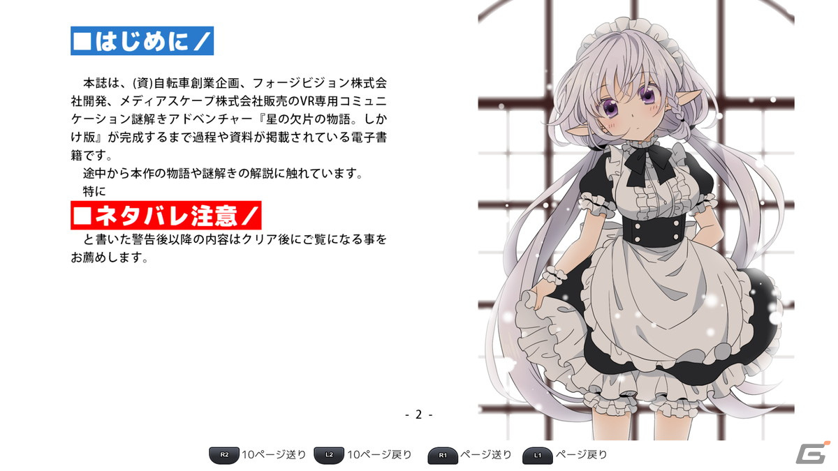 メディアスケープは、自転車創業が企画しフォージビジョンが開発するPS4(PlayStationVR)用ソフト「星の欠片の物語。しかけ版」を、今冬に発売する事を発表した。
