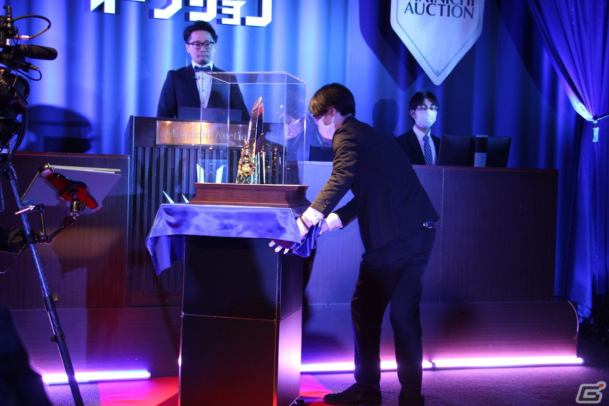 次は龍騎将バランが左目に装着している“ドラゴンファング”。バランは旧アニメでラスボス的な立ち位置だったが、新アニメではダイと共闘するシーンも。ネタバレになるため、あまり語るのは止しておくが、後半のエピソードバランのことが好きになった人も多いのではないだろうか。そんなバランのドラゴンファングは5万円からスタートし、50万円での落札となった。