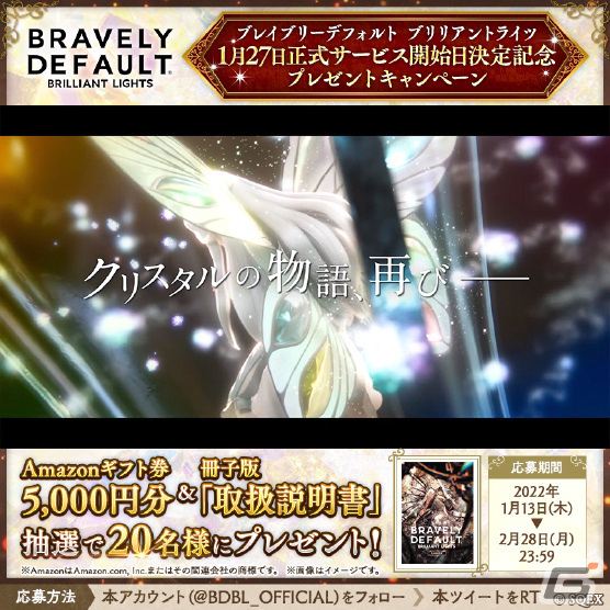 また公式Twitterでは、正式サービス開始日の決定を記念して、本日1月13日よりAmazonギフト券(5,000円分)と冊子版「取扱説明書」のセットが抽選で20名に当たるプレゼントキャンペーンも実施されている。