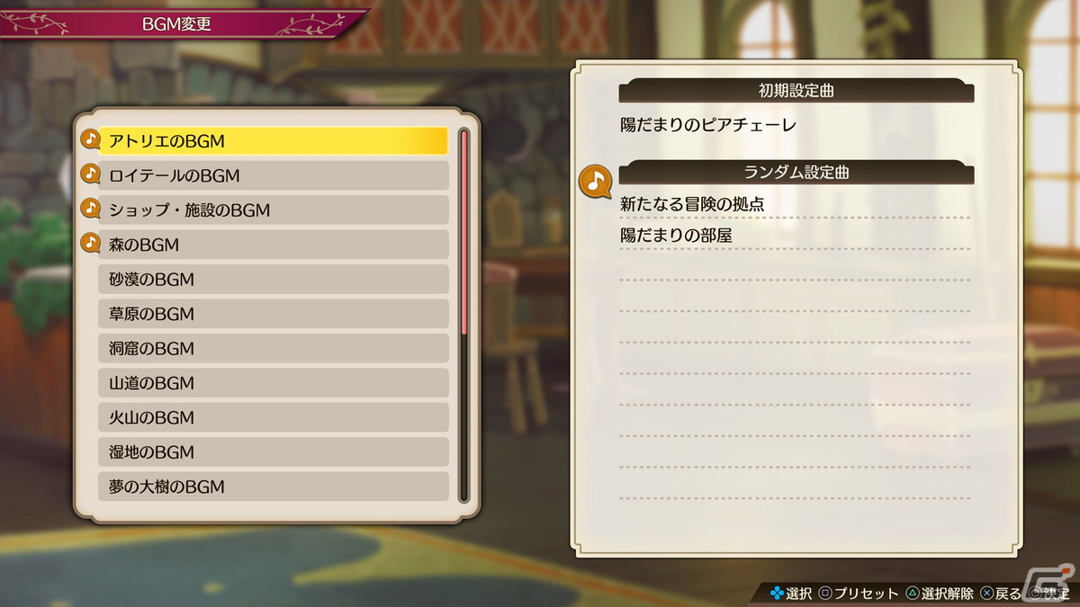 ※BGMは、アトリエの机から「BGM変更」を選ぶことで変更可能です。