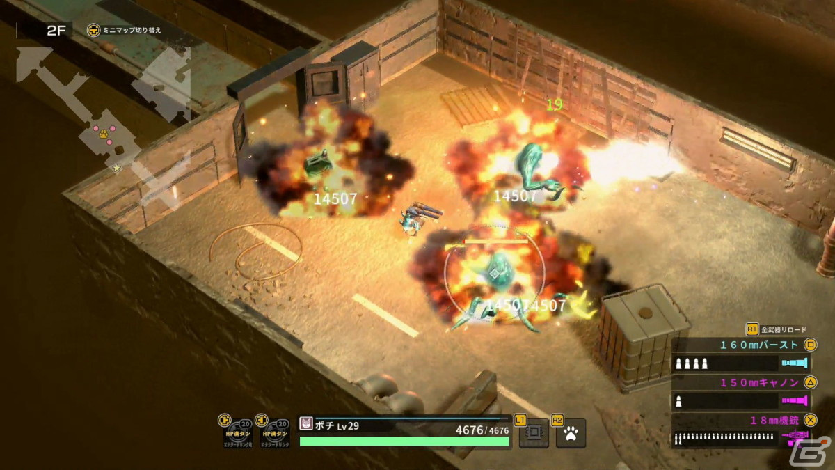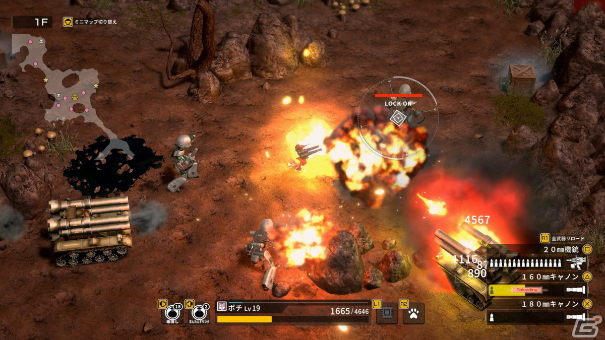 ミッションをクリアしていくにつれ、登場する敵も厄介なものが増えていく。序盤は敵の正面で立ち止まったりしなければ滅多にダメージを受けないが、中盤以降は広範囲に広がる砲撃や、ホーミング弾、毒や炎上、麻痺などの状態異常を付与する攻撃を使ってくる者も登場するように。何度も手下を呼び出す「エリートエネミー」などは優先して倒したい存在で、こういった敵がいるときは、とくに立ち回りがとても重要になる。