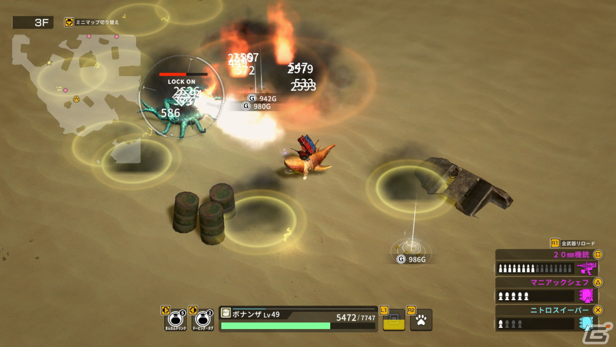 「メタルドッグス」は「メタルマックス」シリーズのスピンオフ作品。重火器を背負った犬・“戦闘犬”の3匹を操作して、文明が滅び、荒廃した世界でさまざまなミッションを遂行。危険な生き物や兵器を殲滅していくゲームだ。