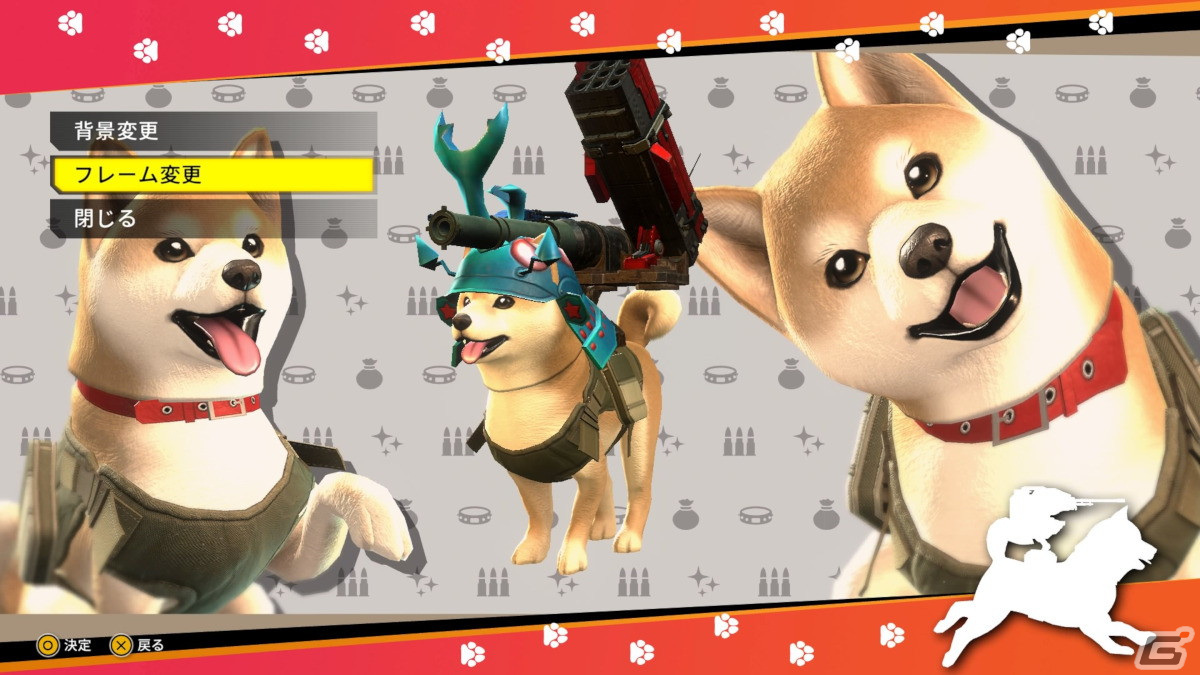背景やフレームもゲームの進行状況に応じて増えていき、好きな組み合わせでスクリーンショットを取り放題だ(背景もフレームもボス敵などをモチーフにしたものが多く、そのあたりは犬好きのニーズとは合っていない気がしないでもないが……)。
