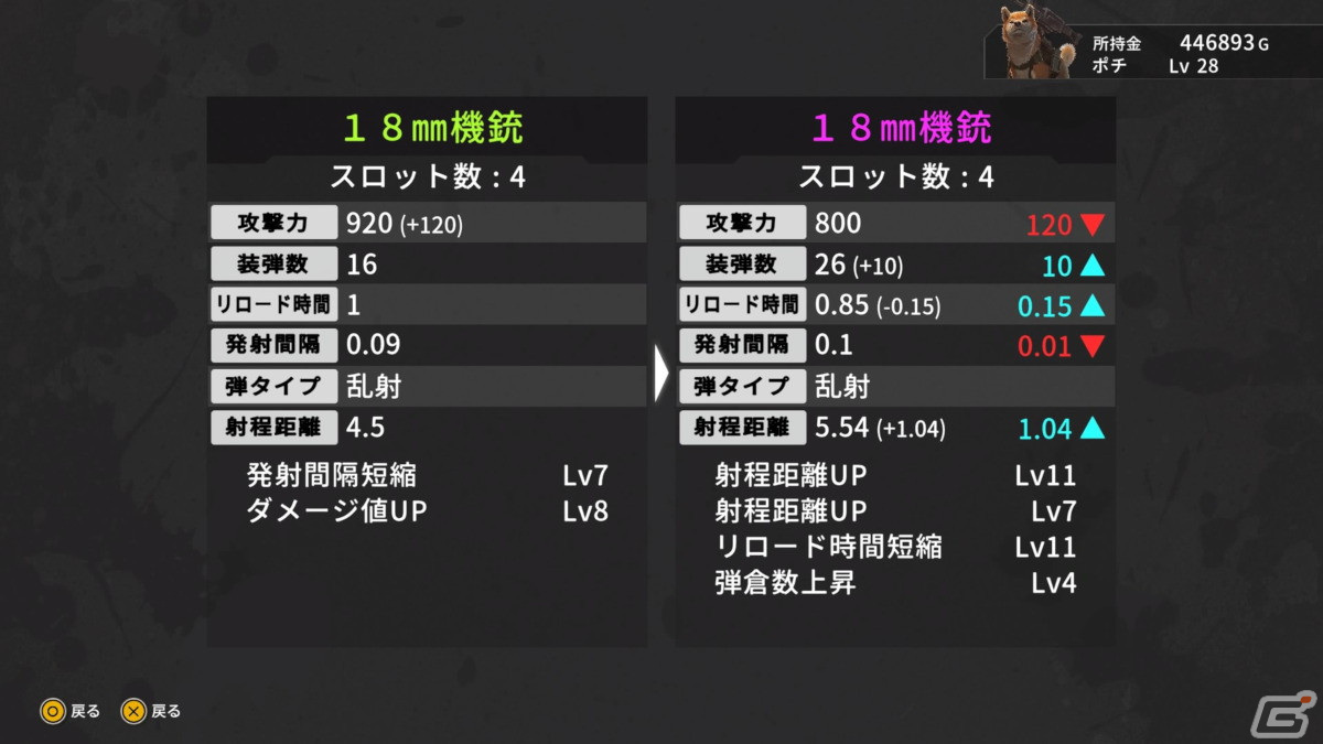 前述の交換所も追加要素だし、ステージ数や装備の種類、BGMも増加。ノーマルモードと異なり、弾薬は有限、装備ロストのデスペナルティもあり、敵も手強くなる新たな難易度「ハードコアモード」も追加されている。装備に付与されたすべての性能アップ効果がランダムで変化してしまう変異実験に対し、特定スロットの性能だけを変えることができる「スロット指定変異実験」や、「付与効果指定レベルアップ」なども、やり込み甲斐を向上させる追加要素だ。