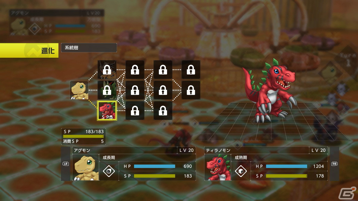 バトル中SPを消費して、強力な技を放ったり、解放済みの進化先にユニットを進化させることで性能を大幅に強化できる。進化中は継続的にSPを消費するが、進化を解くとターンごとに徐々に回復するほか、仲間からの援護や、一部のパートナーとの会話、アイテムを使用することで回復することができる。SPは戦闘を有利に進める大切なエネルギーとなるため、SPのマネージメントが重要だ。