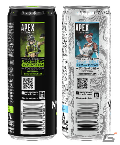 モンスターエナジーブースでは、昨年に続き「Apex Legends」とコラボレーションを実施。店頭販売に先駆け「モンスターエナジー × オクタン」と「モンスター ウルトラ × ライフライン」のコラボデザイン缶をサンプリングする。