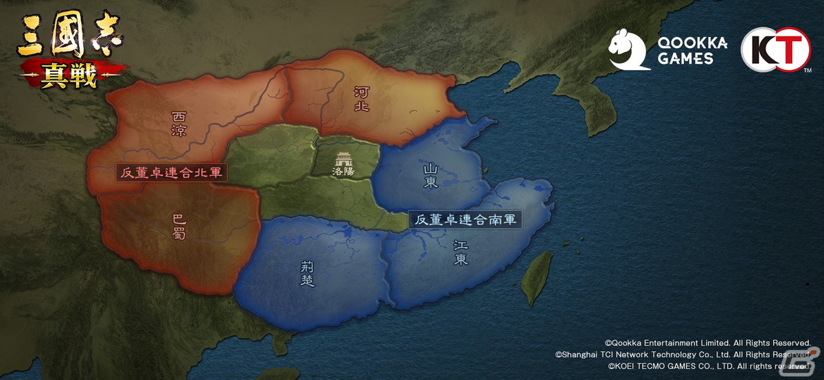 プレイヤーは6つの中から出生州を選び、連合軍に加入して董卓を討伐し、洛陽を奪還して天下統一を目指します。