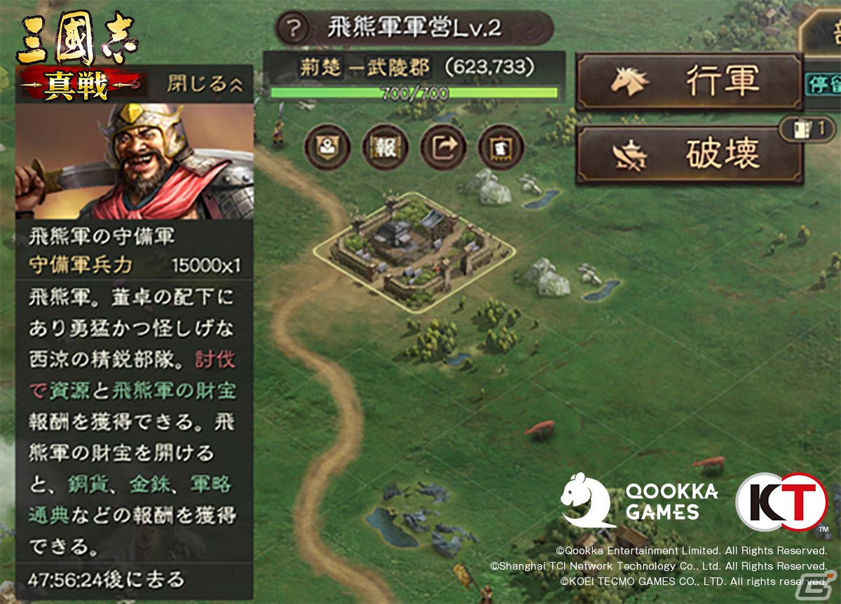 「飛熊軍」の拠点に挑戦する度に政策書×1、体力×15を消費します(賊軍討伐と同じ)。