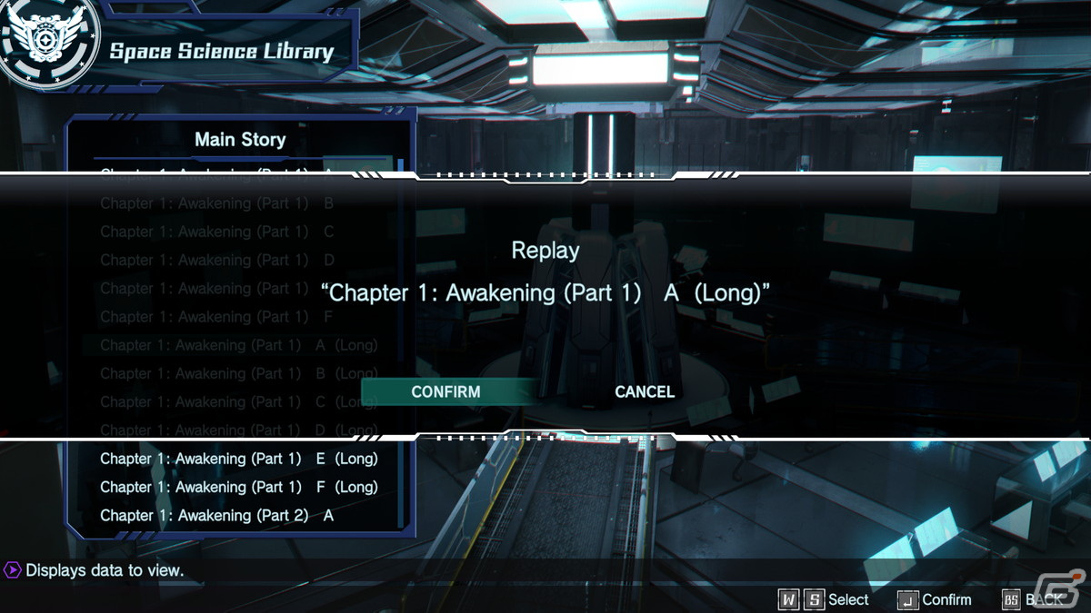 ※シナリオ回想機能は「宇宙科学資料室」→「回想」と進むことで、閲覧できます。