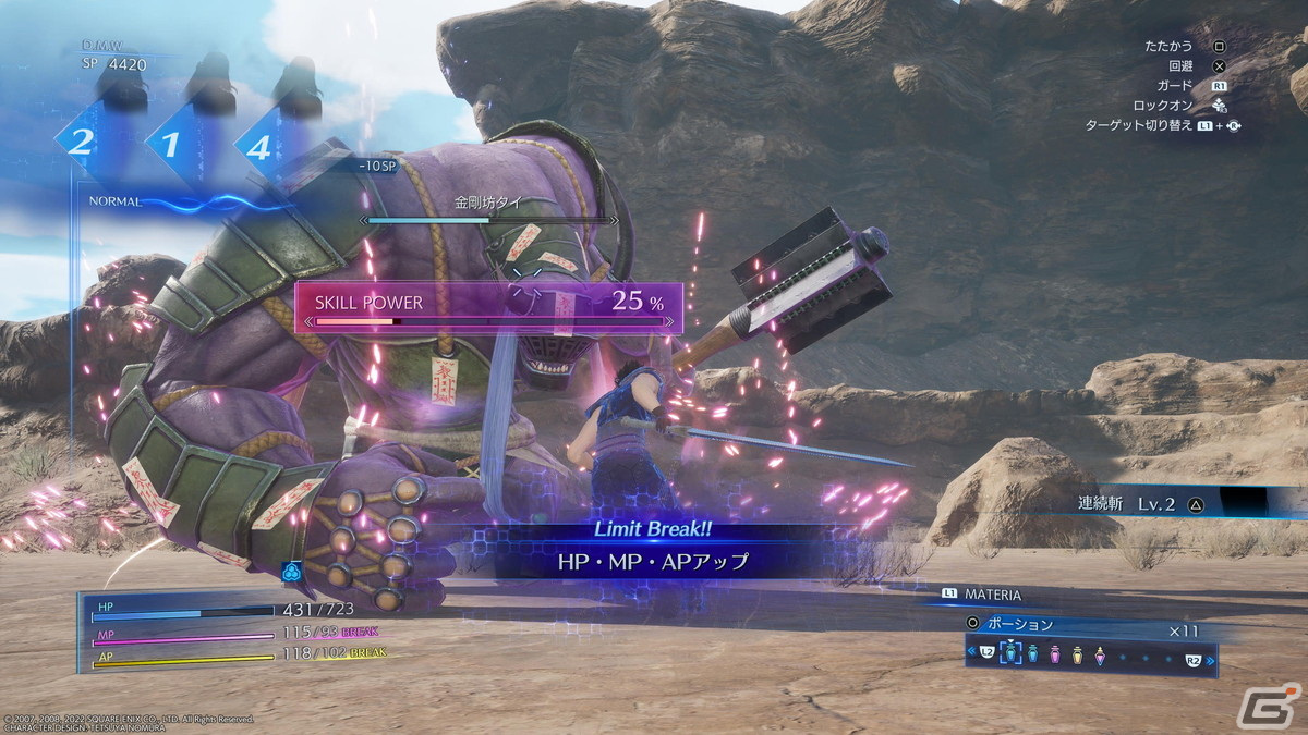 またマテリアの成長も強敵と戦ったほうが上がりやすいように感じられた。ストーリーをプレイしているだけでは上がりにくい要素も、チャレンジミッションに挑むことでより楽に進められるようになる印象だ。