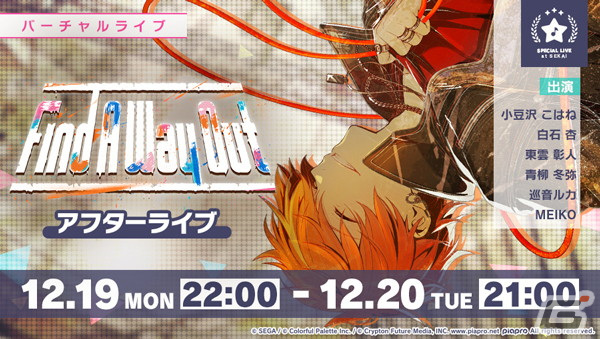「プロセカアフタートーク Find A Way Out編」を2022年12月19日(月)21:30よりYouTube Liveにて生配信いたします。