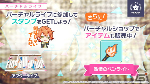 また、「Find A Way Out アフターライブ」の開催に先立ち、12月11日(日)からバーチャルショップにて、ペンライト「熱情のペンライト」を販売中です。
