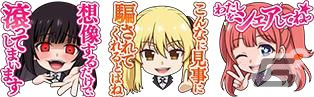 今回のコラボでは、アニメ「賭ケグルイ××」から「蛇喰夢子」、「早乙女芽亜里」、「桃喰綺羅莉」、「生志摩妄」、「夢見弖ユメミ」、「黄泉月るな」が登場。コラボ期間中、アバターやエムホールデムオリジナルの描き起こし&フルボイスのスタンプも獲得できる。