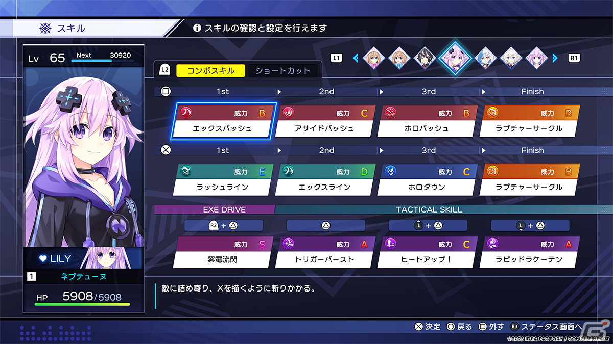「コンボメイク」システムにより、「威力特化コンボ」や、「攻撃後の隙が少ないコンボ」など、自由にキャラクターのコンボスキルを組み替えることができます。10,000通り以上の組み合わせの中から、自分だけのコンボルートを構築しましょう。