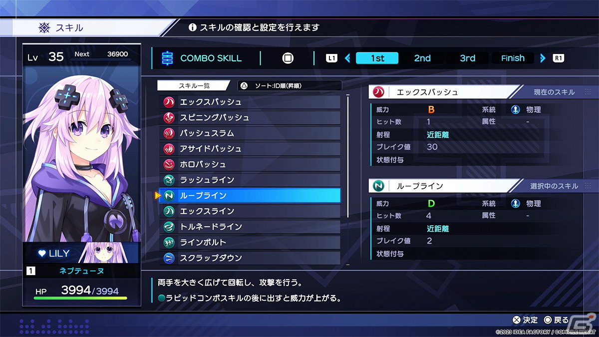 個々の「コンボスキル」には“遠くの敵へ急速接近し攻撃”するものや、“バックステップして距離を取る”ものなど、多彩なアクション性があり、加えて「高ダメージで敵をひるませる」「敵のガードを崩す」「素早い連携攻撃でヒット数を稼ぐ」といった3つの特性が備わっています。
