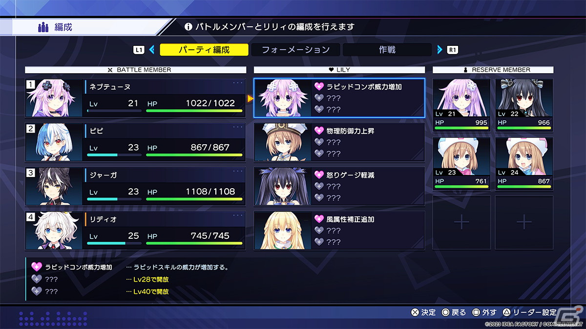 上記で紹介した他にも、バトルメンバーに編成していないキャラクターもバトルに貢献できる「リリィ編成」、バトル開始時にメンバーの初期位置を細かく設定できる「フォーメーション設定」など、本作にはたくさんのカスタマイズ要素があります。自分のプレイスタイルに合わせたカスタマイズを行うことで、より一層快適に遊ぶことができるでしょう。