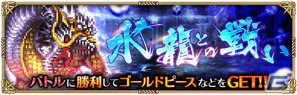 討伐クエストに「水龍との戦い」が追加されました。水龍に勝利すると、昇段の巻物やゴールドピースなどの報酬が獲得できます。