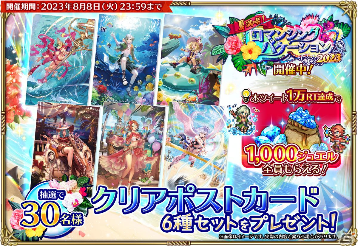 スクウェア・エニックスは、iOS/Android向けアプリ「ロマンシング サガ リ・ユニバース」において、本日8月1日より「夏満喫!ロマンシングバケーション 2023 第1弾」イベントを開始した。