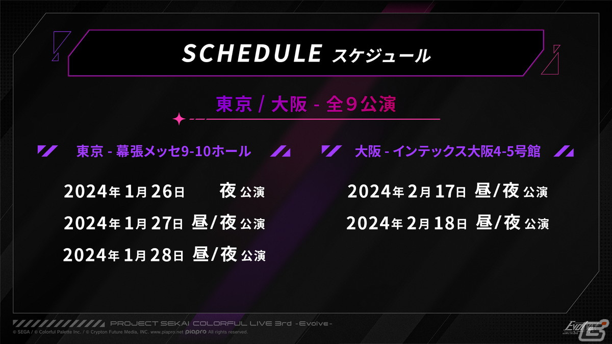チケット情報も公開。東京は幕張メッセ9ホール、大阪はインテックス大阪5号館がライブ会場となり、昼夜2公演ではあるものの、東京初日は夜公演のみとなる。