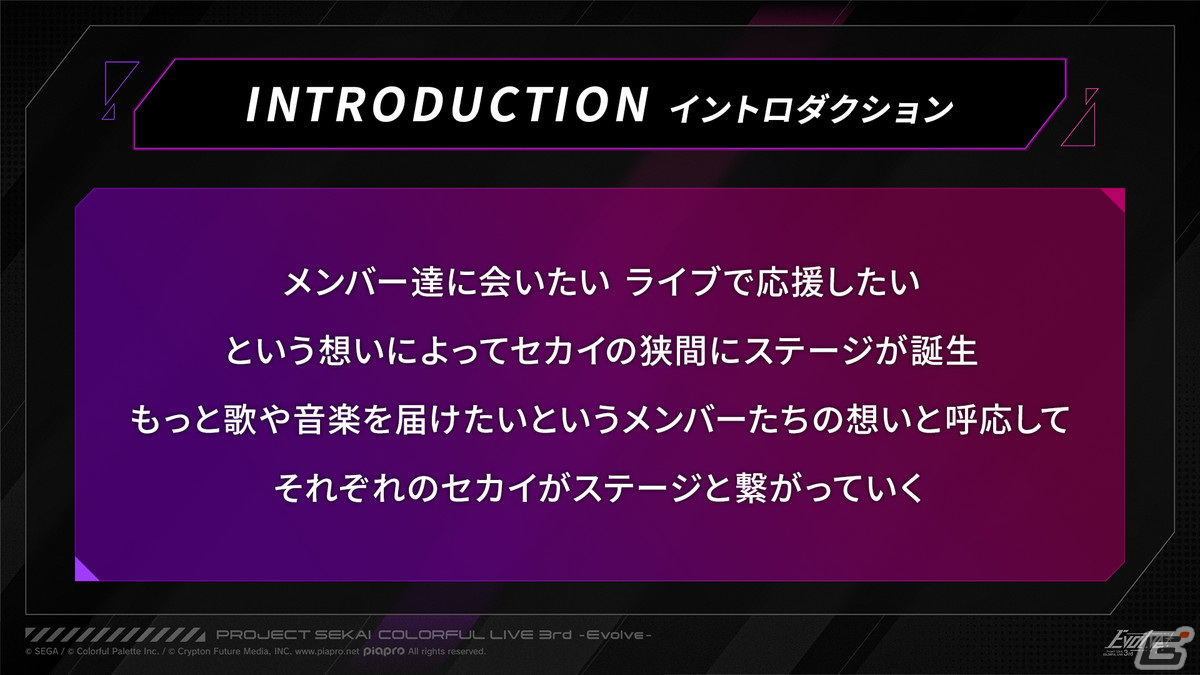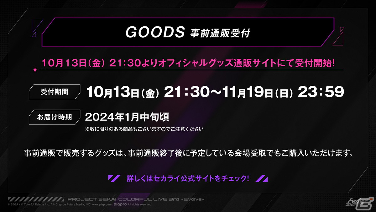 10月13日に行われた「プロジェクトセカイ生放送特番 -セカライ最新情報SP-」にて発表になった、「プロジェクトセカイ カラフルステージ! feat. 初音ミク」のライブイベント「プロジェクトセカイ COLORFUL LIVE 3rd - Evolve -」の最新情報をお届けする。