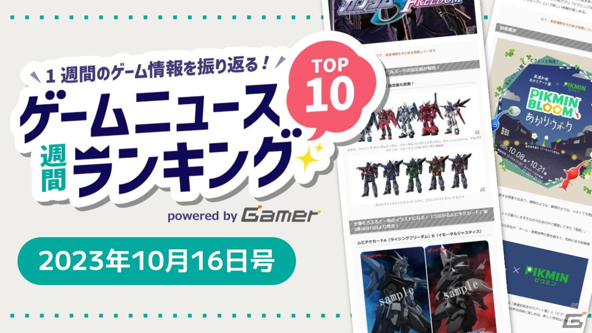 Gamerに掲載されたゲームニュース記事の中から人気記事を振り返る「ゲームニュース週間ランキング Top10」をお届けします。今回の集計期間は、先週分とあわせ、2023年10月2日から10月15日までの2週間分となっています。