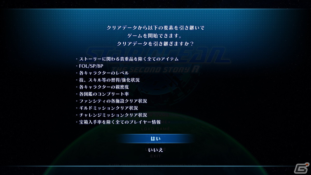 本作ではラスボスを倒したあとのクリアデータがある場合、タイトル画面から「NEW GAME+」を選択でき、アイテムなどを引き継いだ状態で新しく始めることができます。クロード・レナ、どちらのクリアデータでも使用できて、どちらの主人公でもNEW GAME+を開始することができます。